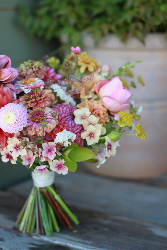 Vi tilbyr brudebuketter, knapphullsblomster, blomsterbøtter og mer i sesong fra april-september. Åkerblomstene våres gir et unikt uttrykk til feiringen. Lær mer om blomstringskalenderen og se vanlige spørsmål om våre bryllupsblomster.